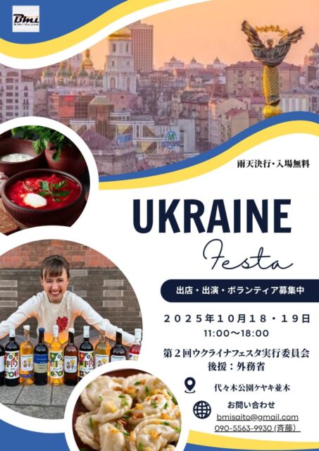 代々木公園ケヤキ並木で開催されるウクライナフェスタ2025は、本場ウクライナの伝統料理や音楽、ダンス、アートを通じて文化交流を楽しむイベントです。会場にはウクライナの家庭料理やスイーツ、ワインなどが並び、華やかな民族衣装や音楽ステージが彩ります。家族や友人と一緒にウクライナの魅力に触れ、温かな交流を感じられる2日間です。